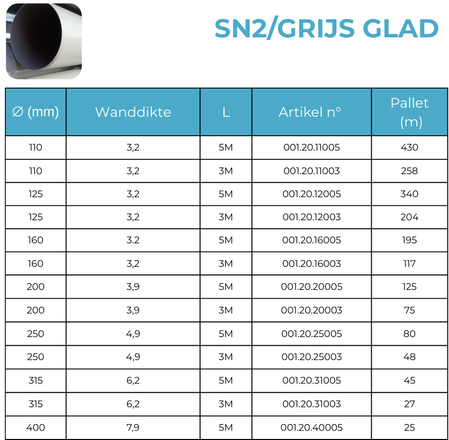 De PVC rioleringbuizen die voldoen aan de normen NBN EN 1401 en/of NBN EN 1329 en BENOR gekeurd. Naargelang hun toepassing worden de buizen geproduceerd in 2 kleuren: